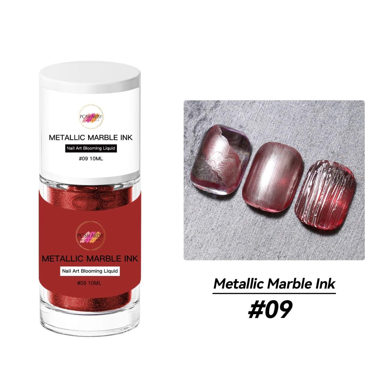 Our metallic marble ink is a pigmented liquid formulated to create fun and one of a kind nail art.
