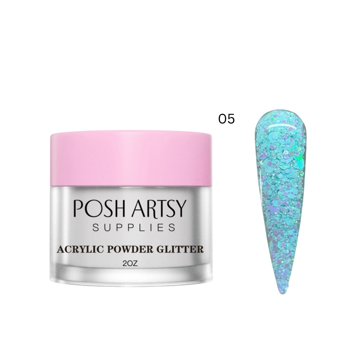 Posh Artsy Supplies acrylic powders are highly pigmented, smooth to apply and packed with GLITTER!