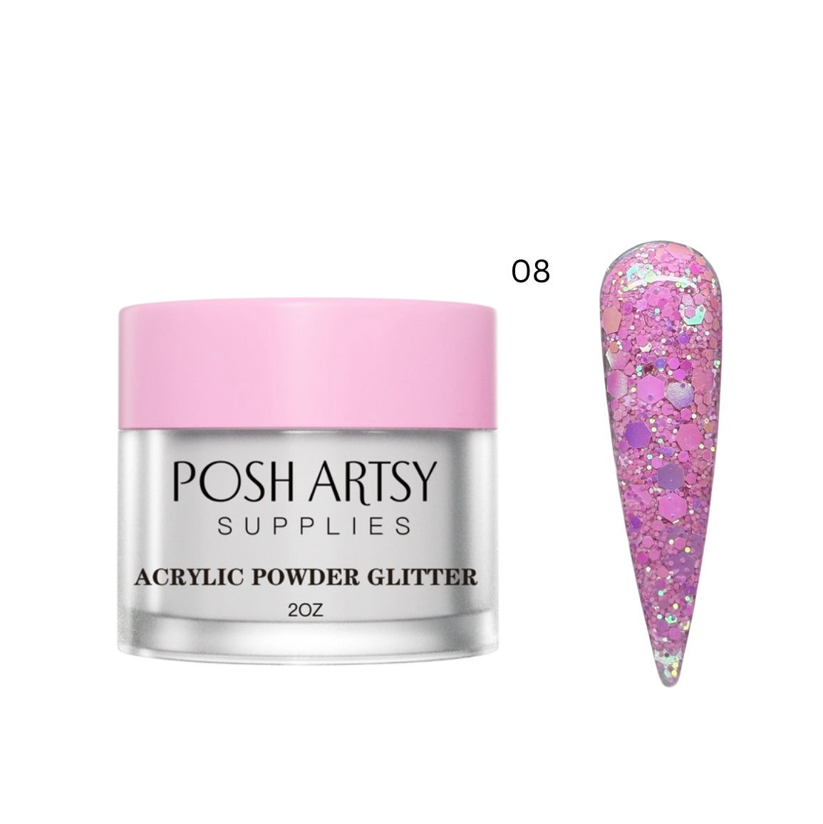 Posh Artsy Supplies acrylic powders are highly pigmented, smooth to apply and packed with GLITTER!